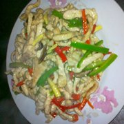 里脊肉、青椒、红椒、香菇或木耳、笋丝、油、蒜末、盐、味精、淀粉、胡椒粉、加饭酒、香油。