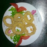 鱿鱼、蒜头、油、生粉、蛋、面包糠、盐、味精、加饭酒、胡椒粉。