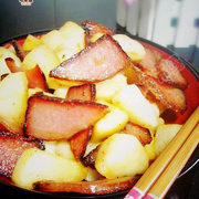 苹果、山药、腊肉、植物油、料酒、神奇牌蔬菜调料粉、盐。