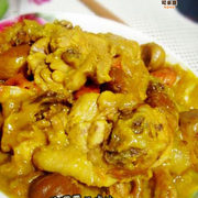 鸡大腿、洋葱、胡萝卜、栗子、好侍百梦多咖喱、玉米油。
