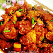 五花肉、葱、油豆腐、姜 、八角、老抽、冰糖、玉米油、豆瓣酱、大酱、料酒。