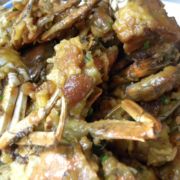 河蟹、面粉、生姜、鸡蛋、水、葱、糖、鲜酱油、蚝油、色拉油、黄酒、盐。