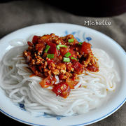 QQ面、番茄、肉馅、洋葱、料酒、番茄酱、蒜蓉辣酱、盐、胡椒粉、鸡精。