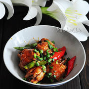 鸡中翅、葱头、姜、青红尖椒、麻辣鲜、料酒、烤肉酱、现磨黑胡椒粉。