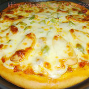 高筋面粉、低筋面粉、水、奶粉、干酵母、鸡腿肉、蔬菜、鸡肉火腿肠、青椒、马苏里拉乳酪。