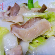 猪肚、白菜、黑木耳、盐、鸡精、蒜、姜、大葱、八角、桂皮、料酒。