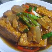 白豆干、老豆腐、青、红椒、大蒜、腊肉、酱油、糖、麻辣鲜、盐、鸡精。