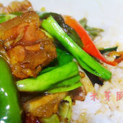 腊肉、青椒、红椒、大蒜、酱油、盐、鸡精、糖。