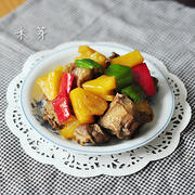 鸭腿、小菠萝、青红椒、姜片、白酒、生抽、盐、鸡精。