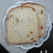 高筋面粉、即发干酵母、水、高筋面粉、细砂糖、盐、奶粉、蛋液、水、黄油、葡萄干。