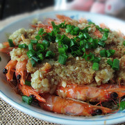 鲜虾、粉丝、蒜蓉、葱花、生抽、香醋、香油、温开水。