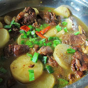 牛腩、红薯、干辣椒、花椒、八角、桂皮、大葱、姜、蒜、料酒、老抽、柱候酱、糖、盐、鸡精。