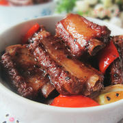 排骨、干辣椒、花椒、陈皮、姜、蒜、葱头、料酒、生抽、老、冰糖、盐、鸡精。