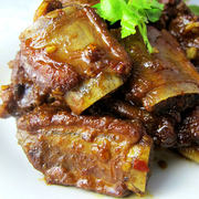 肋排、干辣椒、花椒、姜、蒜、蒜蓉辣酱、甜糯米酒、老抽、胡椒粉。