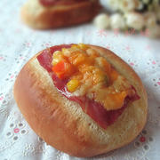 高筋面粉、低筋面粉、细砂糖、盐、奶粉、干酵母、全蛋液、水、无盐黄油、培根、冷冻什锦蔬菜粒、比萨奶酪丝、沙拉酱。