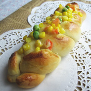 高筋面粉、鸡蛋、奶粉、牛奶、酵母、盐、糖、黄油、冰冻什锦蔬菜粒、沙拉酱。