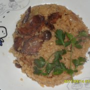 鸡肉、米饭、油、盐、胡椒粉、料酒、面粉、蒜蓉油麦菜。