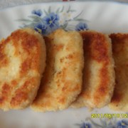 鸡胸脯、鸡蛋、淀粉、面包屑、黑胡椒面、盐、花生油。