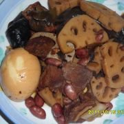 猪肉、莲藕、花生米、海带、炸豆腐、熟鸡蛋。