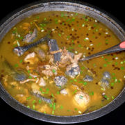 花莲鱼、葱、芹菜、黄花、黄豆芽、油豆皮、火腿肠、菜籽油、猪油、郫县豆瓣、火锅底料、盐、花椒粒、胡椒面、料酒、白糖。