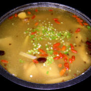 老土鸭、酸萝卜、泡姜、泡莨姜、泡椒、老姜、葱结、香葱、花椒粒、胡椒面、白酒、大枣、枸杞、味精、鸡精。