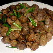 嫩胡豆、香葱、菜籽油、盐、味精、姜、花椒粒。