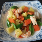 海虾、菠罗、青椒、胡罗卜、葱姜、料酒、胡椒粉。