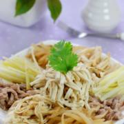 五花肉、胡萝卜丝、莴笋丝、姜丝、生抽、植物油。