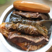 牛肉、白菜、莲藕、海带卷、葱、姜、八角、桂皮、醋、糖、料酒、老抽、生抽、盐。