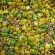 鸡腿肉、玉米粒、青豆粒、姜粒、盐、酱油、油、嫩肉粉。