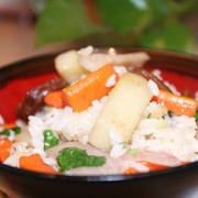 大米、红萝卜、土豆、腊肠、莲藕、洋葱、香菜。