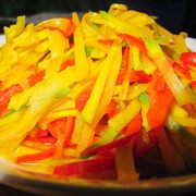 红辣椒、嫩南瓜、糖、盐、鸡精。