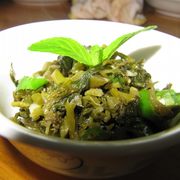 苦瓜、排骨、韩式辣酱、蒜子、小葱、青红辣椒、八角、盐、糖、鸡精。