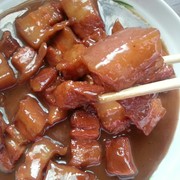 五花肉、蜜汁排骨调料、姜片、八角、淀粉、食用油、料酒、生抽。