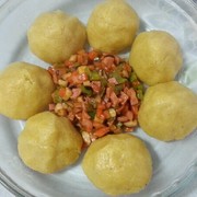 豆渣、面粉、西红柿、鸡蛋、胡萝卜、鲜香菇、葱、五香粉、盐、蔬之鲜、蚝油。