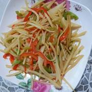 土豆、青红椒、花椒油、蒜、生抽、盐、白醋。