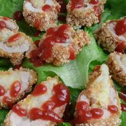 鸡翅中、面包糠、淀粉、面粉、亨氏番茄沙司、盐焗粉。