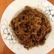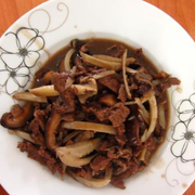 牛肉、香菇、莲藕、水淀粉、料酒、酱油、盐、红糖、胡椒粉、味精、醋。