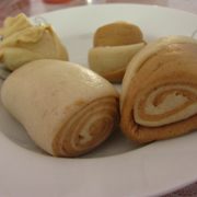 面粉、玉米粉、白糖、食用油、泡打粉、牛奶、葡萄干。