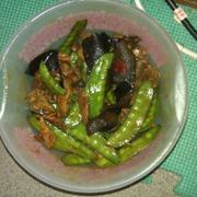 鸡杂、荷兰豆、木耳、姜、蒜、花生油、盐、淀粉、老抽、豆瓣酱。