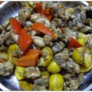 田鸡、板栗、红辣椒、姜、料酒、生抽、盐、蚝油。