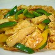 猪肉、彩椒、生粉、生抽、蒜米、蚝油、麻油。