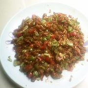 胡萝卜、卤牛肠子、葱、姜、辣椒粉。