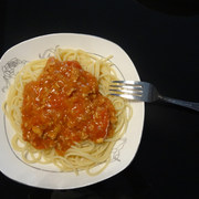 意大利面、西红柿、肉馅、洋葱、蒜、番茄酱、盐、芝士、胡椒。