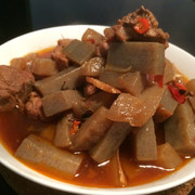魔芋、鸭腿、老姜、大蒜、小尖椒、麻椒、干辣椒、八角、香叶、生抽、老抽、料酒、盐。