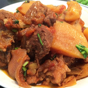 牛肉、西红柿、土豆、老姜、大蒜、花椒、八角、香叶、香菜。