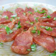 腊肠、粉条、葱花、盐、生抽。