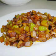 青椒、香菇、洋葱、香辣酱、盐。