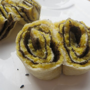 中筋面粉、、温水、酵母、玉米面、开水、黑芝麻酱、盐。