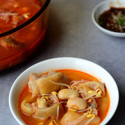 猪蹄、芸豆、黄豆芽、西红柿、姜、蒜、贵州红酸、木姜子油、食用油。
